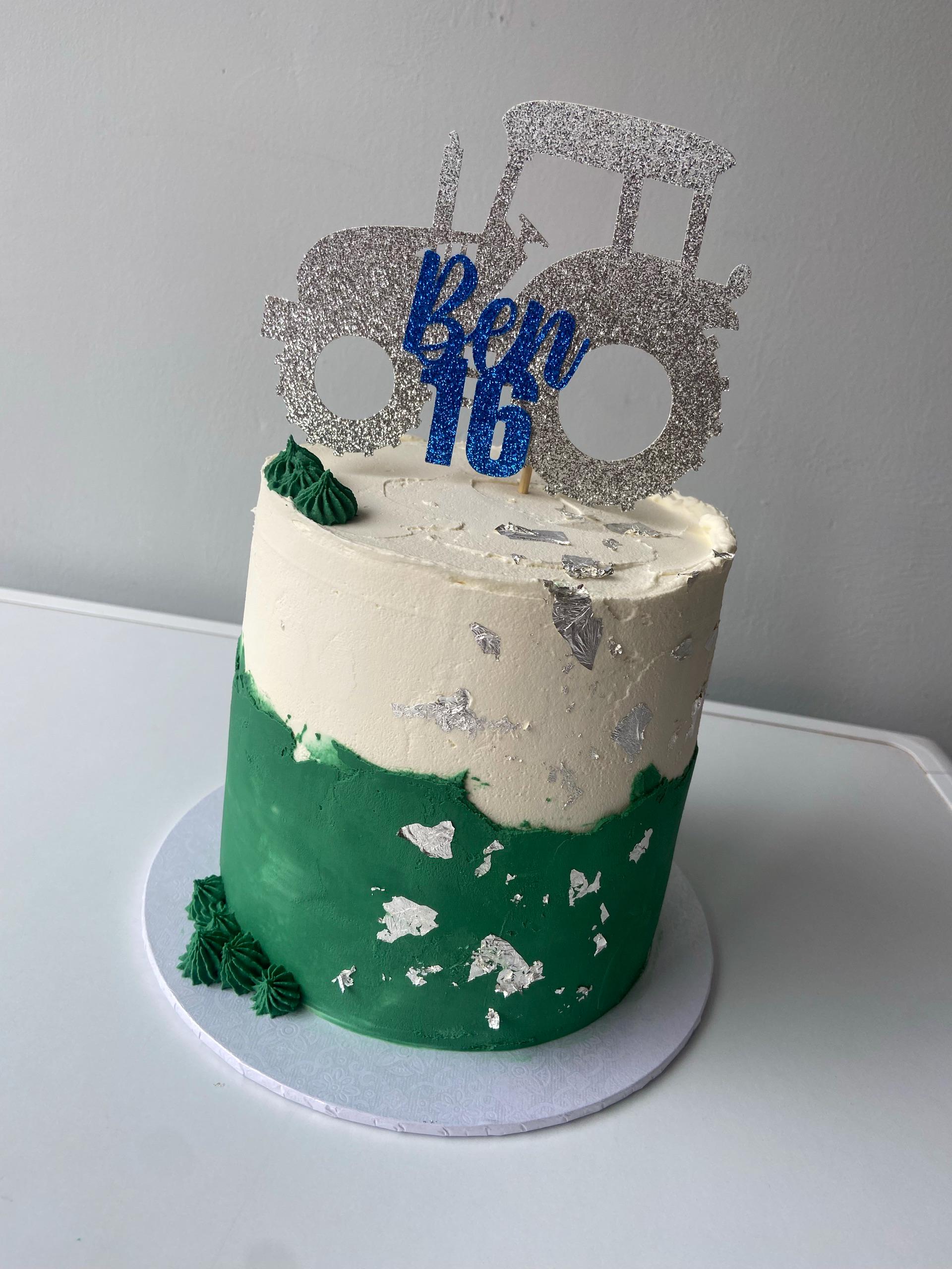 This listing is for 1 x Tractor Cake decoration in a choice of colours, personalised with a name and age of your choice, attached to a food safe skewer.