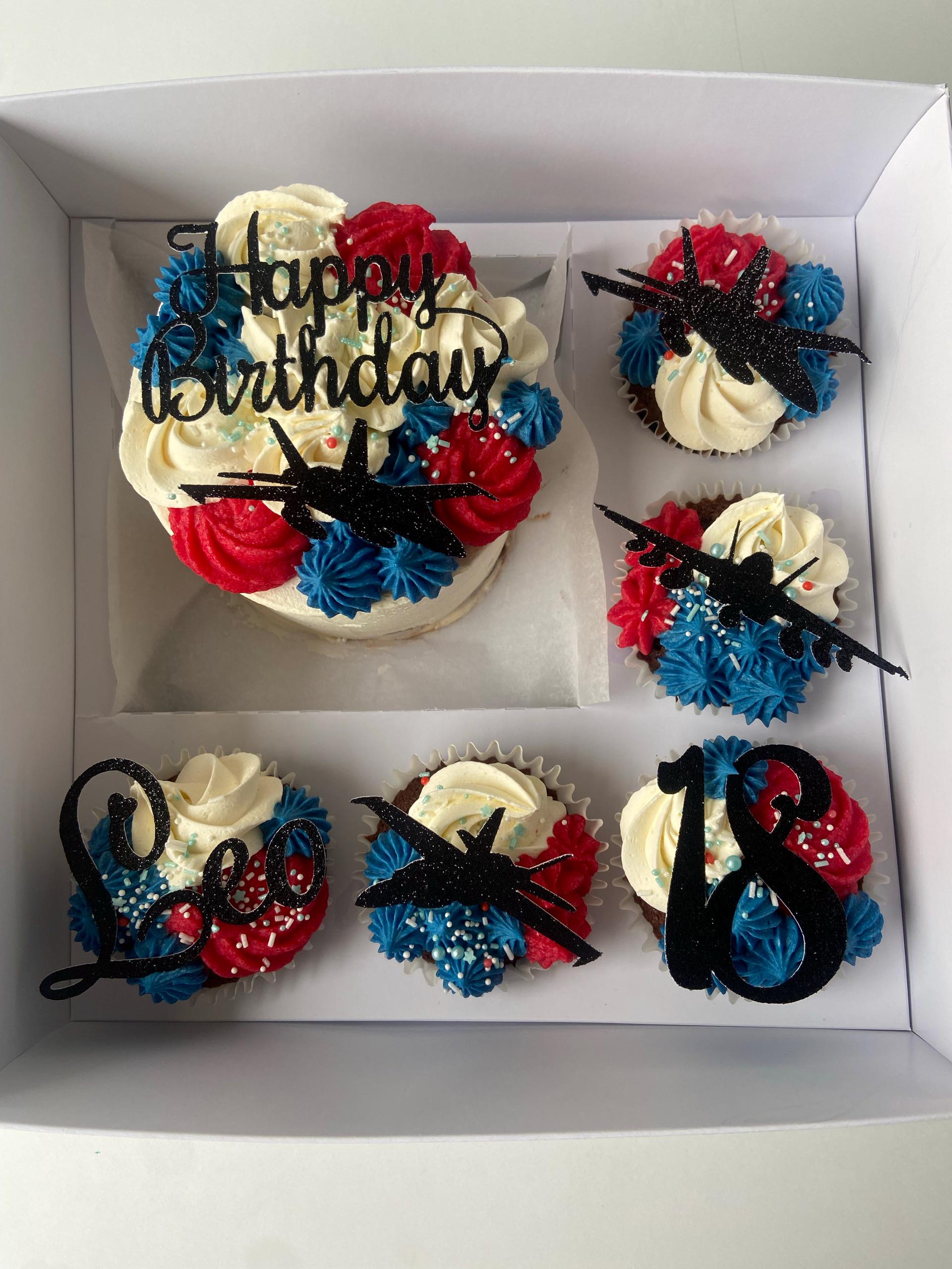 This listing is for 1 pack of 6 Fighter jet cupcake toppers in black , left plain without cocktail sticks to lay flat on the cake/cupcake.