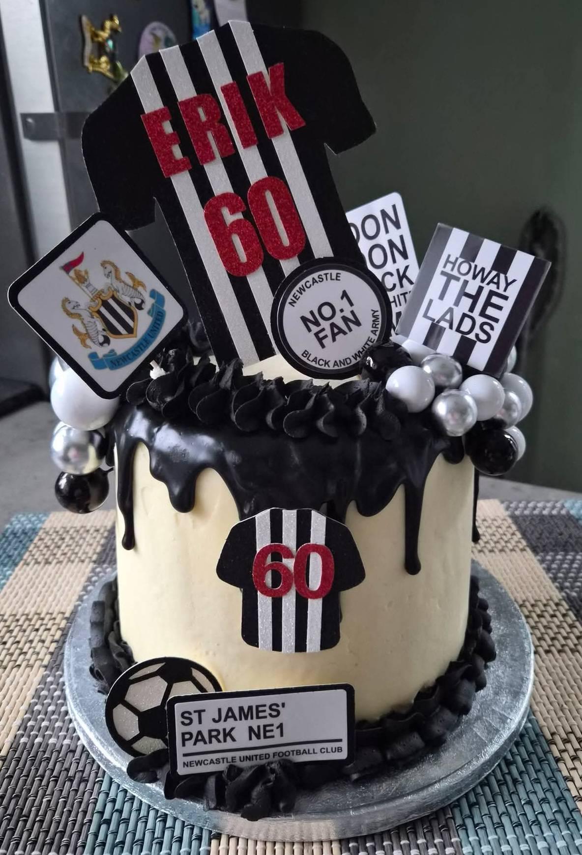This listing is for 1 x Striped Personalised Football Shirt Cake Topper, as in photograph. Newcastle colours.