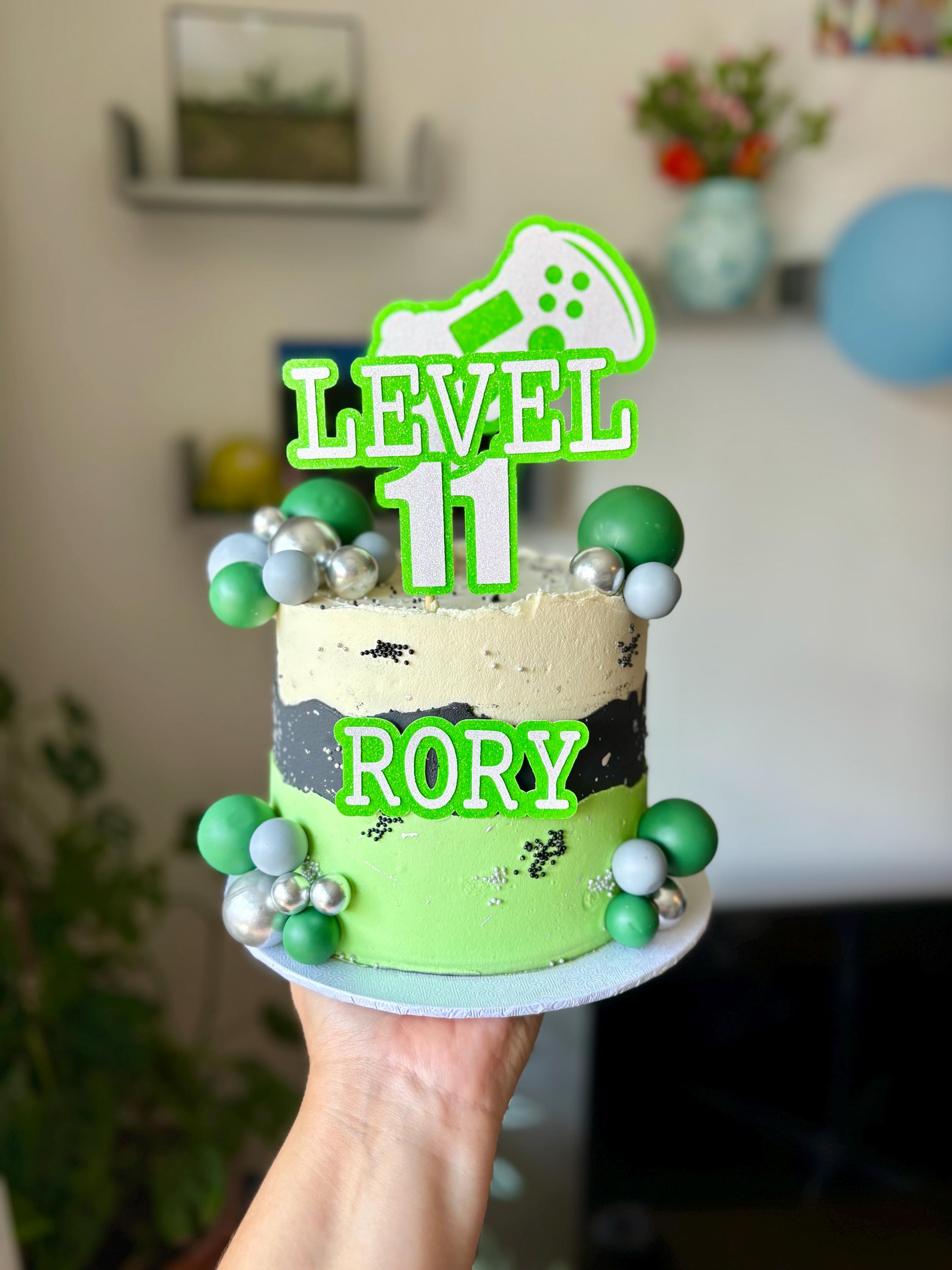 This listing is for 1 x Gamer Themed Birthday Cake Topper with separate Level age topper as shown in the photos, attached to a skewer.