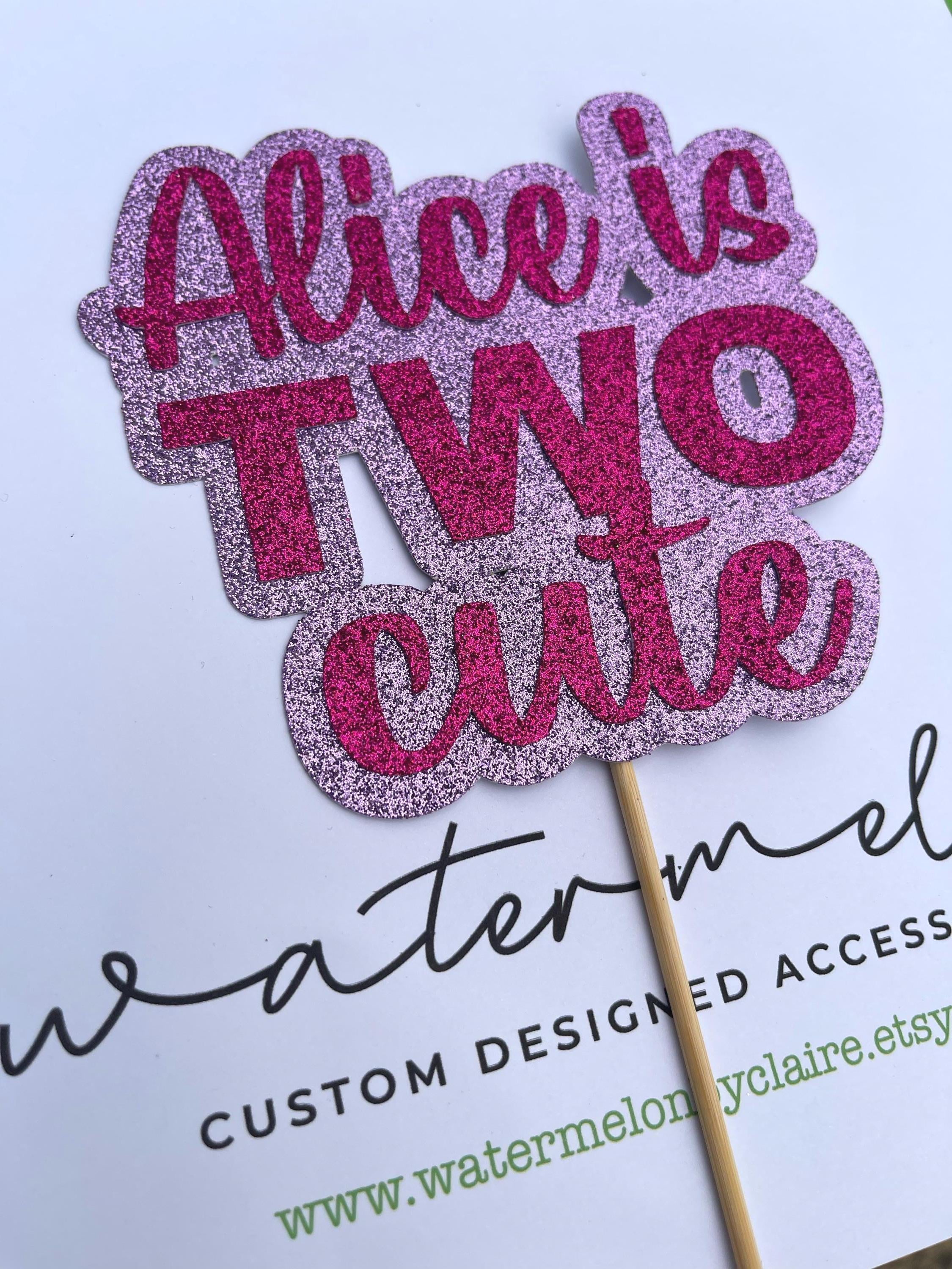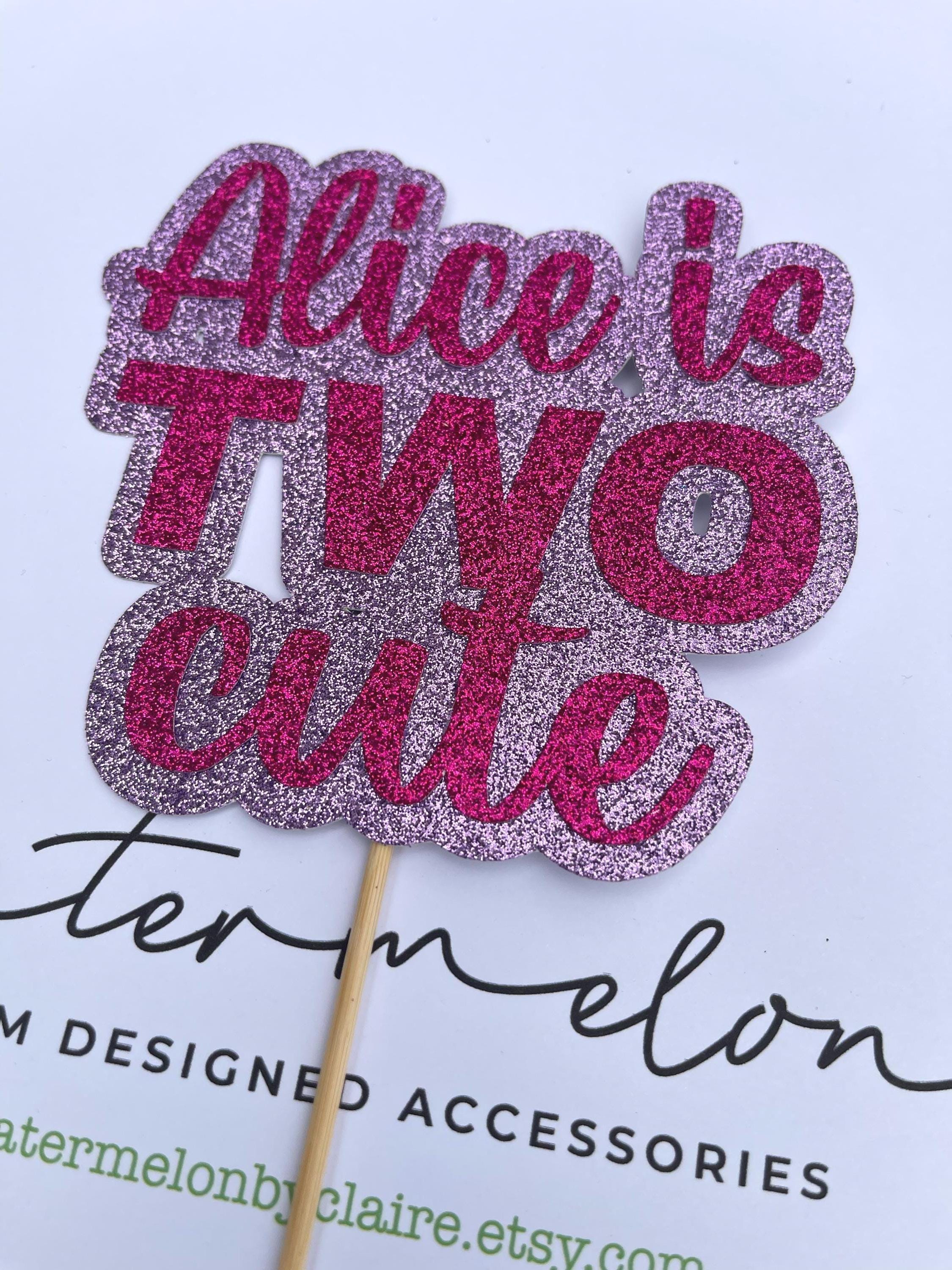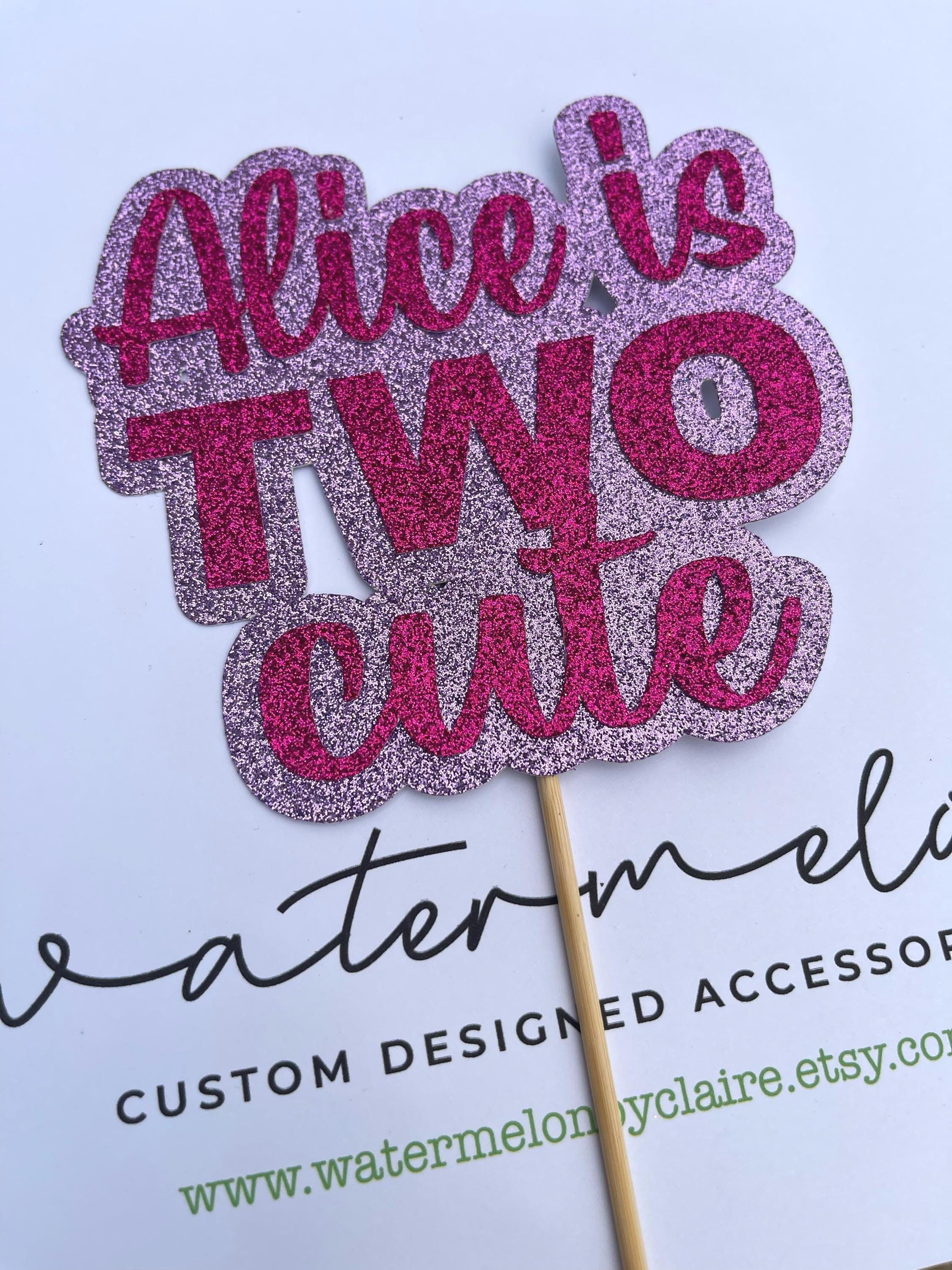 ★Two Cute Personalised Glitter Cake Topper - Any name - Birthday cake topper ★