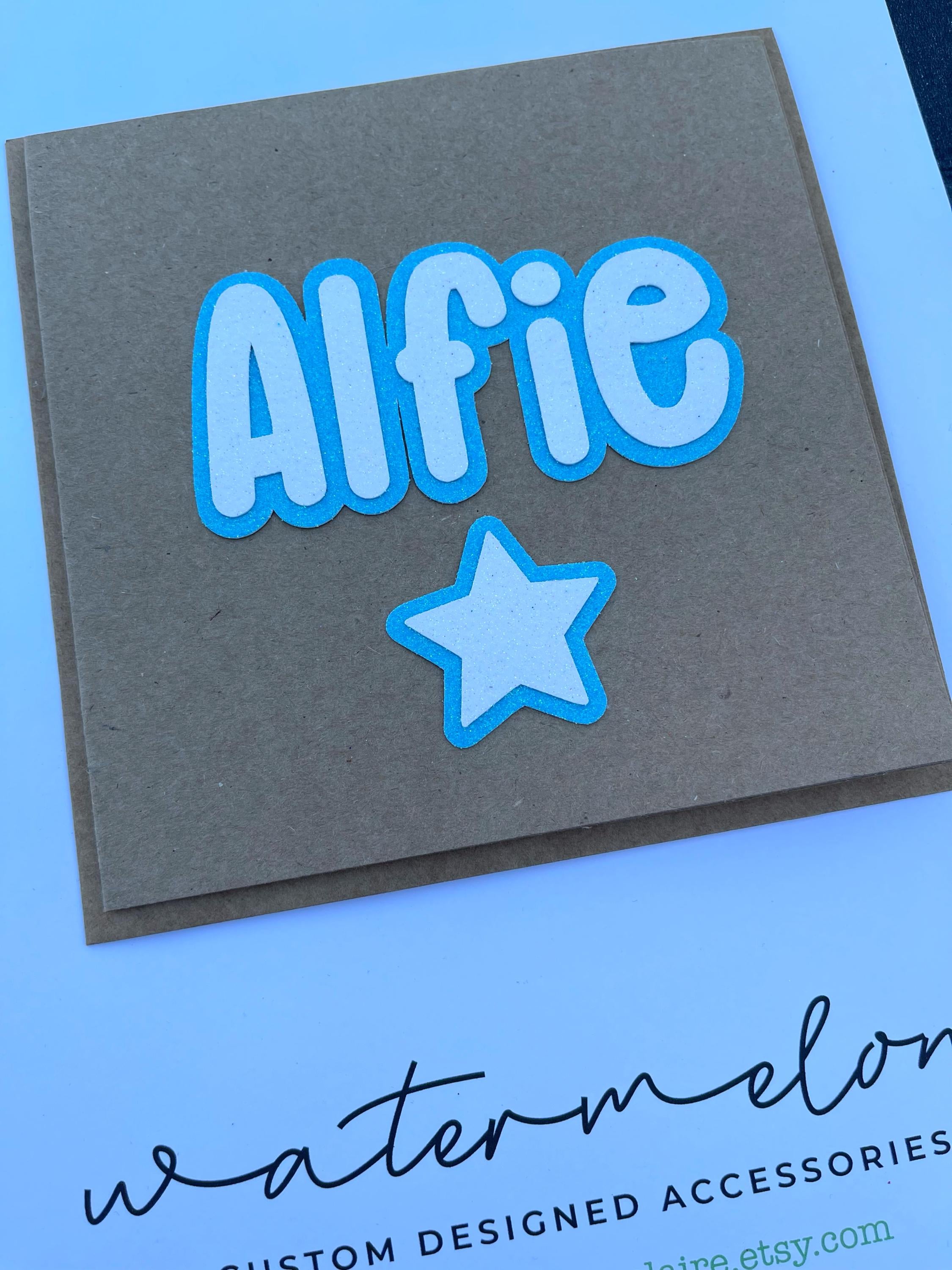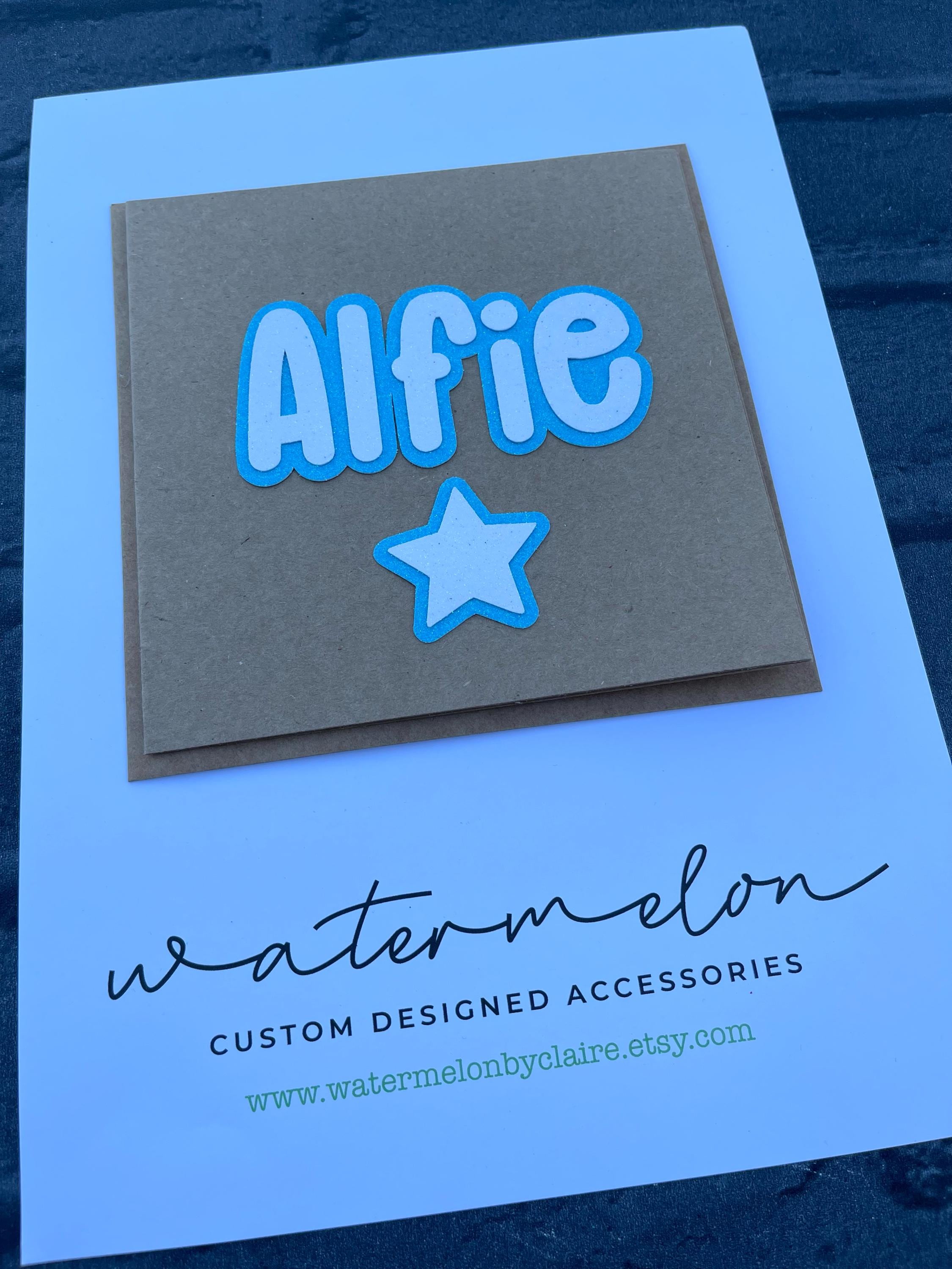 This listing is for 1 x Personalised Name Card in white text with your choice of colour backing, on kraft brown card blank as shown in photos.