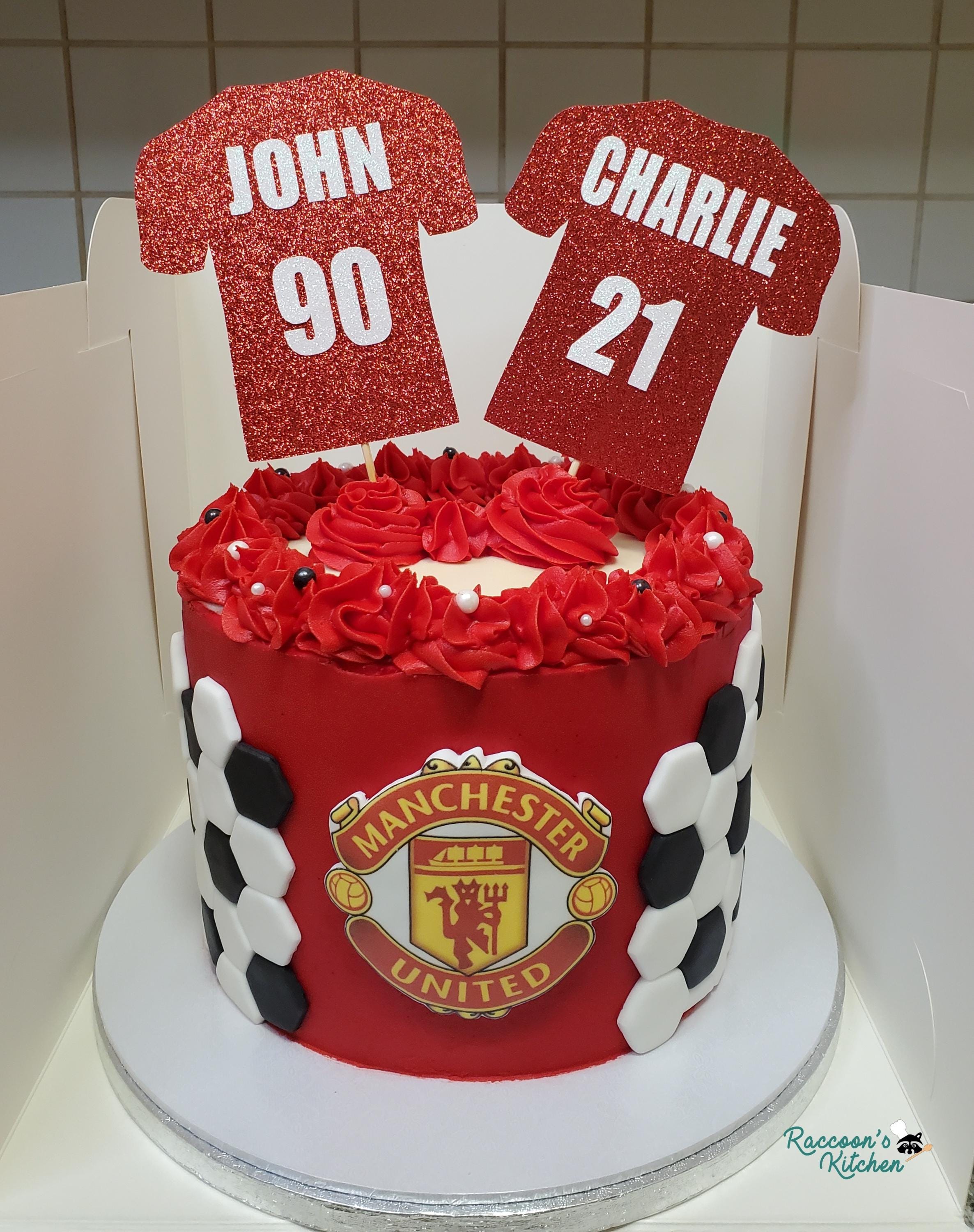 ★Personalised Football Shirt Cake Topper -RED - Manchester / Liverpool Colours ANY NAME / AGE - Birthday - Anniversary ★
